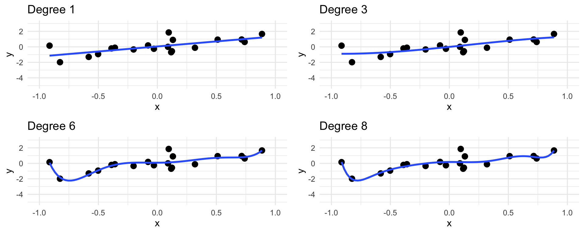 In the limit, we can think of the “connect-the-dots” estimator, which estimates the trend as a curve that passes through every single point in the dataset.