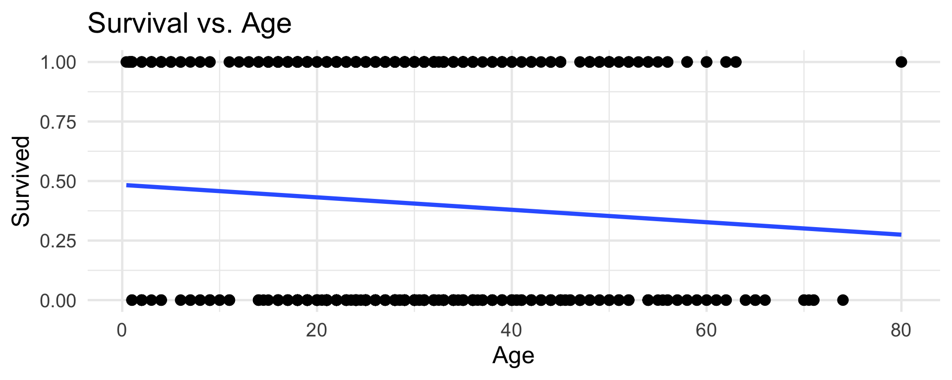 glm_age <- glm(Survived ~ Age, data = titanic, family = "binomial")