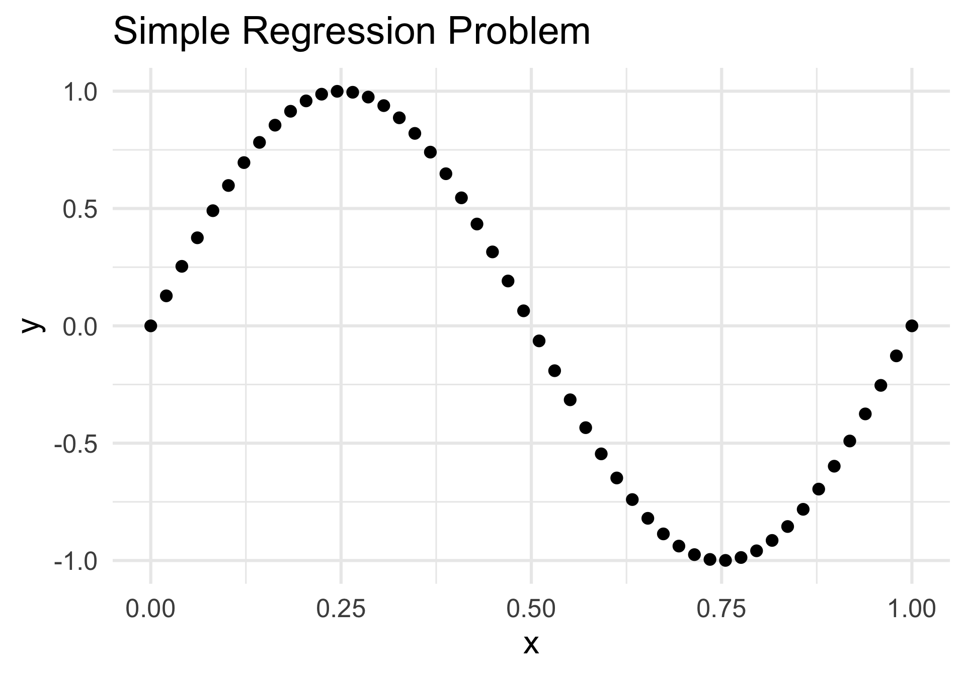 \[ y(\vect{x}, \vect{\beta}) = \beta_0 + \sum_{j=1}^{p} \beta_j \phi_j(\vect{x})\]